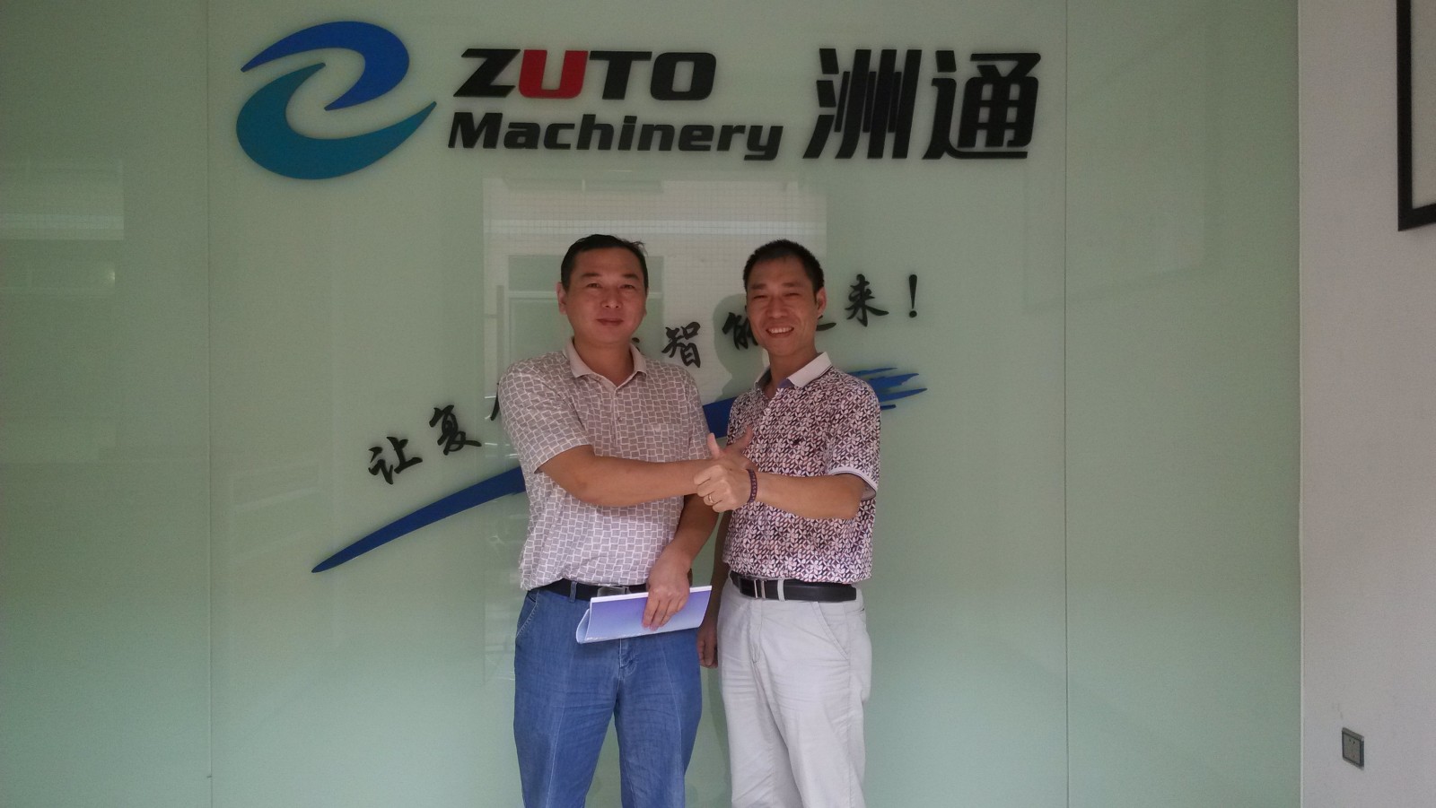 2016年10月25日,東莞厚街某加工廠客戶蒞臨洲通機(jī)械洽談單刀油糊機(jī)訂購(gòu)事宜,我司黃總親自接待,并向客戶詳細(xì)介紹了我們洲通機(jī)械單刀油糊機(jī)產(chǎn)品的功能和特點(diǎn),雙方的洽談十分愉快。最后,在充分地了解到我們的產(chǎn)品能滿足他們的生產(chǎn)需求后,這位客戶與我們簽訂了購(gòu)機(jī)合同。