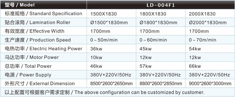 | 紙品復合機/貼合機-紙品復合機/貼合機LD-004F1主要技術(shù)參數(shù) / Major technical parameters |