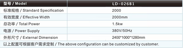 | 斜裁卷布機(調(diào)速型)LD-026B1主要技術參數(shù) / Major technical parameters |