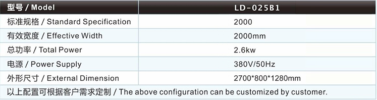 | 圓刀分條機(氣動型)LD-025B1主要技術參數(shù) / Major technical parameters |