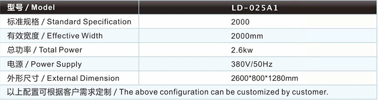 | 圓刀分條機(jī)(手動型)LD-025A1主要技術(shù)參數(shù) / Major technical parameters |