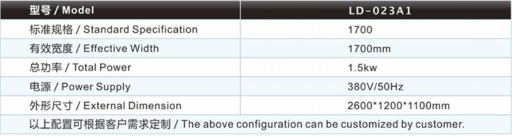 | 多刀分條機LD-023A1主要技術(shù)參數(shù) / Major technical parameters |