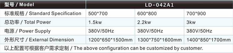 | 單桶油糊攪拌機(jī)LD-042A1主要技術(shù)參數(shù) / Major technical parameters |