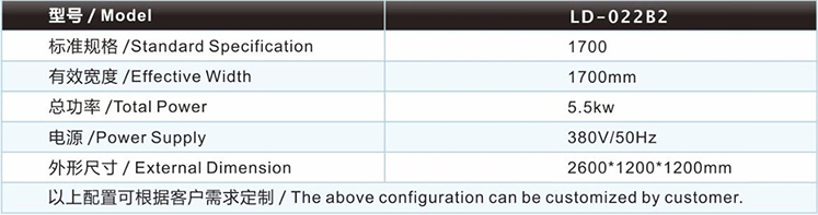 | 圓刀直刀兩用裁條機LD-022B2主要技術(shù)參數(shù) / Major technical parameters |