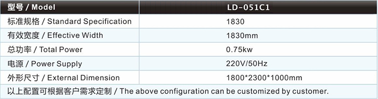 | 普通卷布機(jī)LD-051C1的主要技術(shù)參數(shù) / Major technical parameters |