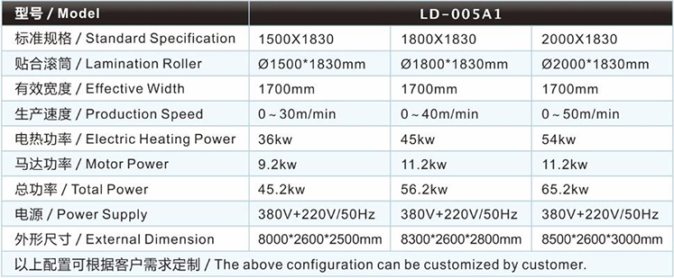 | 運動用品復合機/貼合機-EVA強力膠復合機/貼合機LD-005A1的主要技術參數(shù) / Major technical parameters |