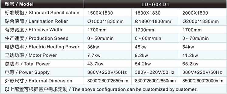 | 運動用品復合機/貼合機-白膠強力膠兩用復合機/貼合機LD-004D1的主要技術(shù)參數(shù) / Major technical parameters |