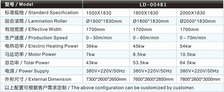 | 水膠復(fù)合機(jī)/貼合機(jī)-立式雙槽水膠網(wǎng)帶復(fù)合機(jī)/貼合機(jī)LD-004B1的主要技術(shù)參數(shù) / Major technical parameters |