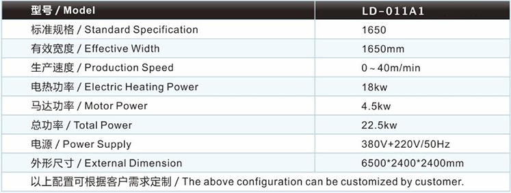 | 表面收卷單版皮革改色機(jī)LD-011A1的主要技術(shù)參數(shù) / Major technical parameters |