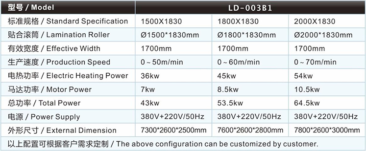 | 水膠復(fù)合機(jī)/貼合機(jī)-立式雙槽水膠復(fù)合機(jī)/貼合機(jī)LD-003B1主要技術(shù)參數(shù) / Major technical parameters |
