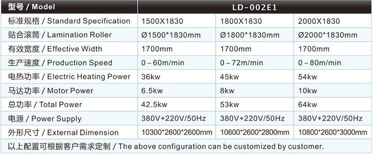 | 內(nèi)衣復(fù)合機(jī)/貼合機(jī)-自動(dòng)對邊橫式單槽水膠網(wǎng)帶復(fù)合機(jī)/貼合機(jī)LD-002E1主要技術(shù)參數(shù) / Major technical parameters |
