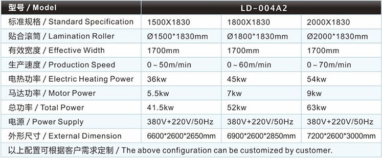 | 球革復(fù)合機(jī)/貼合機(jī)-立式單槽水膠網(wǎng)帶復(fù)合機(jī)/貼合機(jī)LD-004A2主要技術(shù)參數(shù) / Major technical parameters |